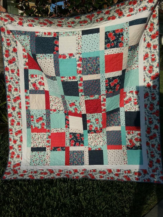 Quilt Twin Size Riley Blake Hedge Rose Fabric Patchwork Etsy