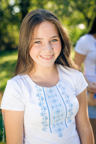 Young Pretty Teenage Girl Having Fun On Green Summer Outdoors Stock Photo Adobe Stock