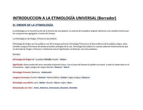 Historia de la Etimología. La historia de las palabras. 2 363 palabras Publicado.