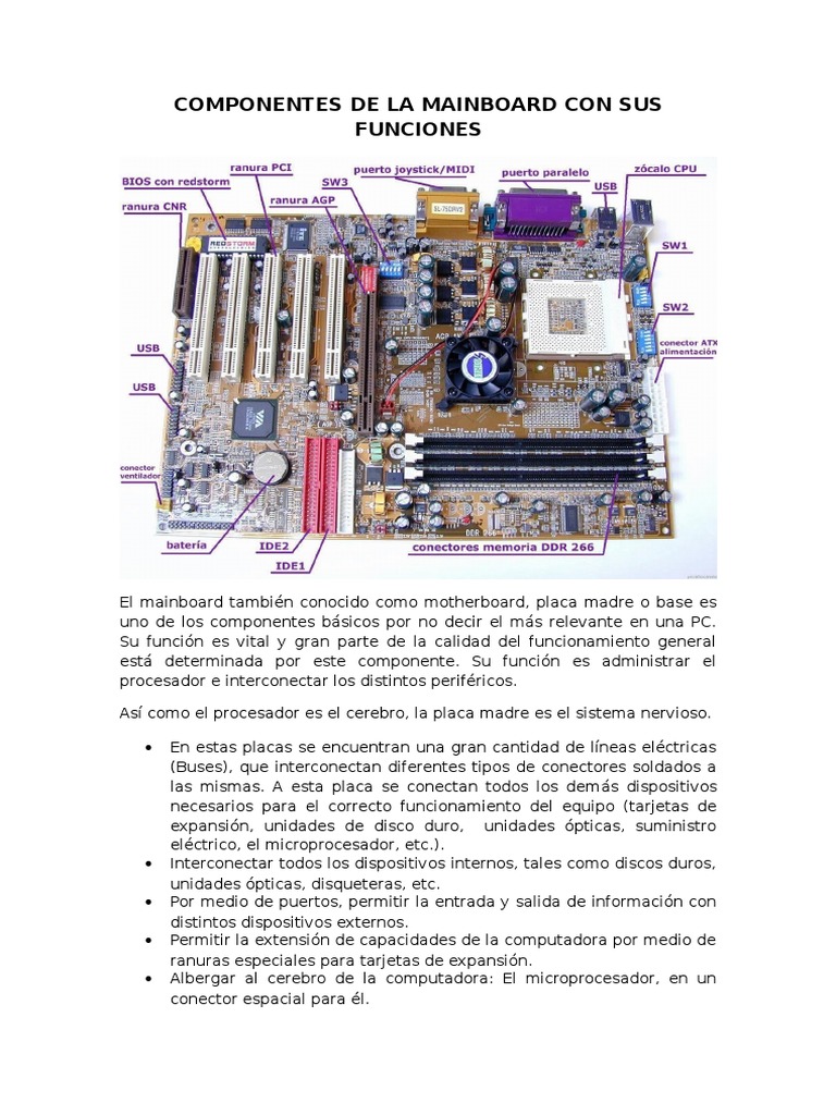 Partes de la tarjeta madre y sus funciones pdf. Tarjeta Madre Y Sus Piezas Principales. No los hay de marca. Tarjeta madre y sus componentes.