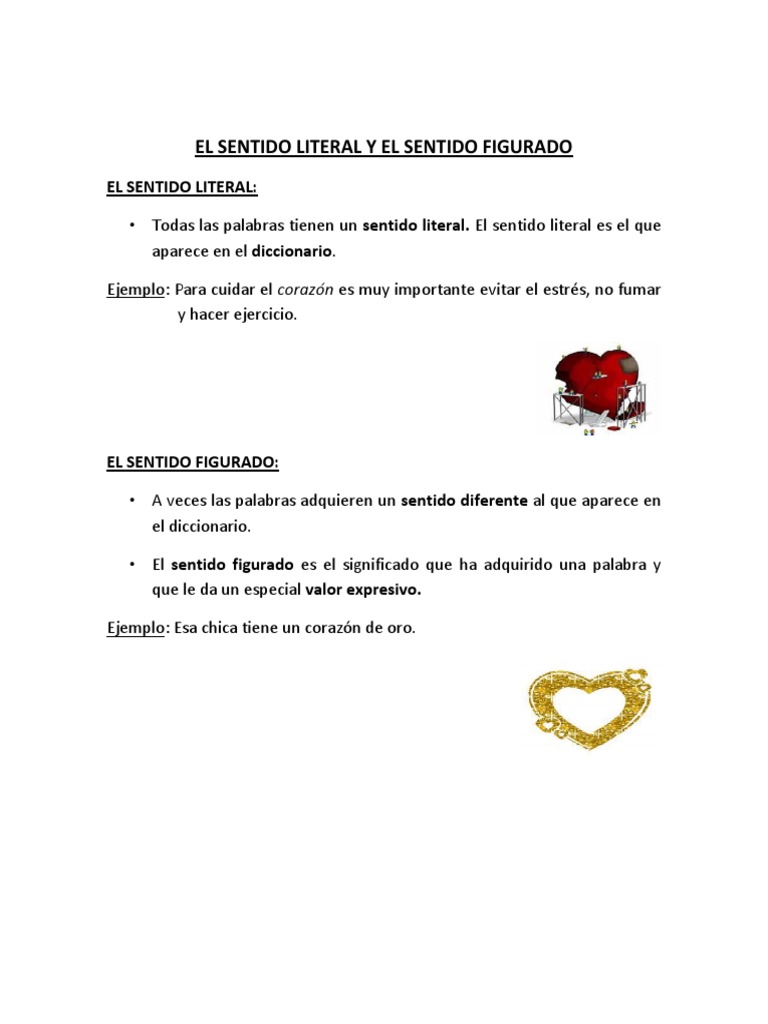 3 Vocabulario Sentido Literal Y Sentido Figurado El Rincon De Elena