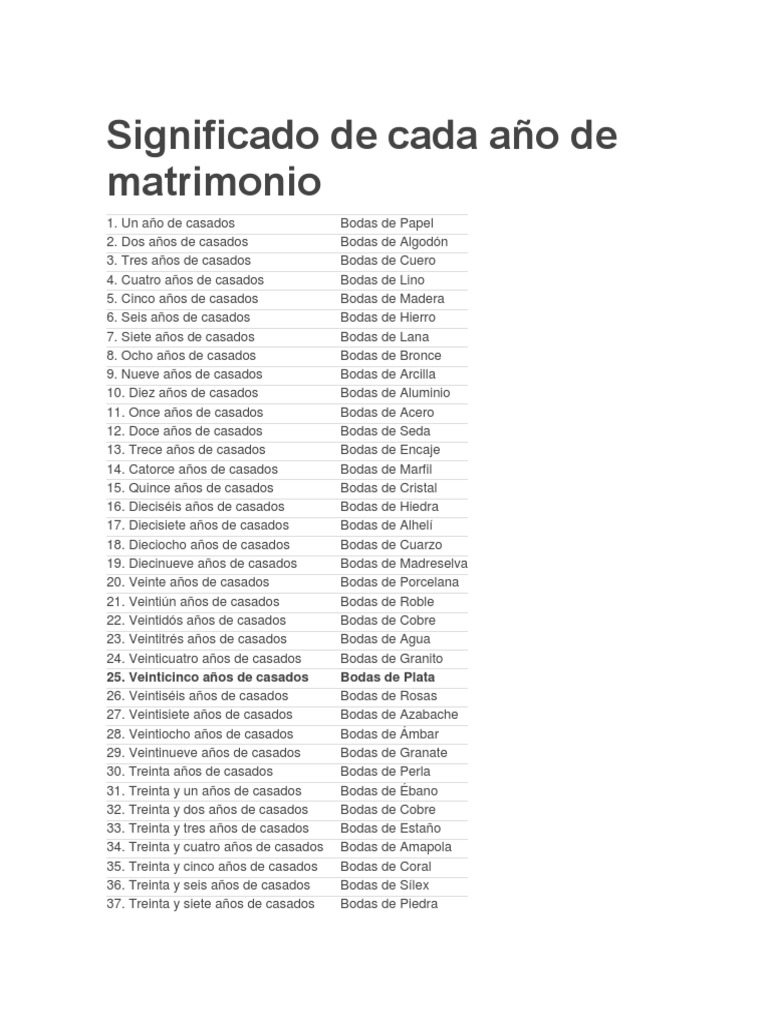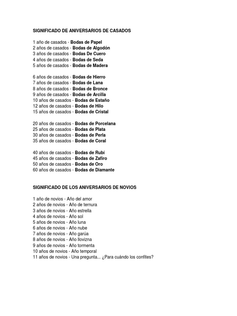Significado De Años De Matrimonio