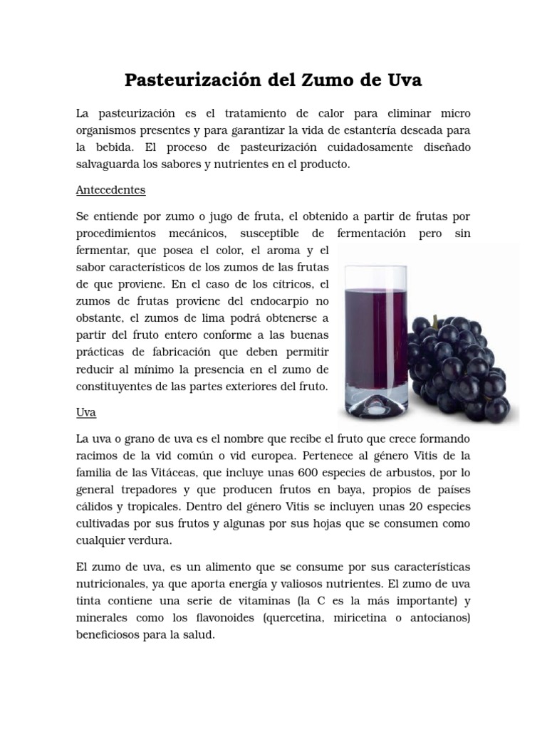 Pasteurizacion Del Zumo De Uva Pdf Bienestar Medicina