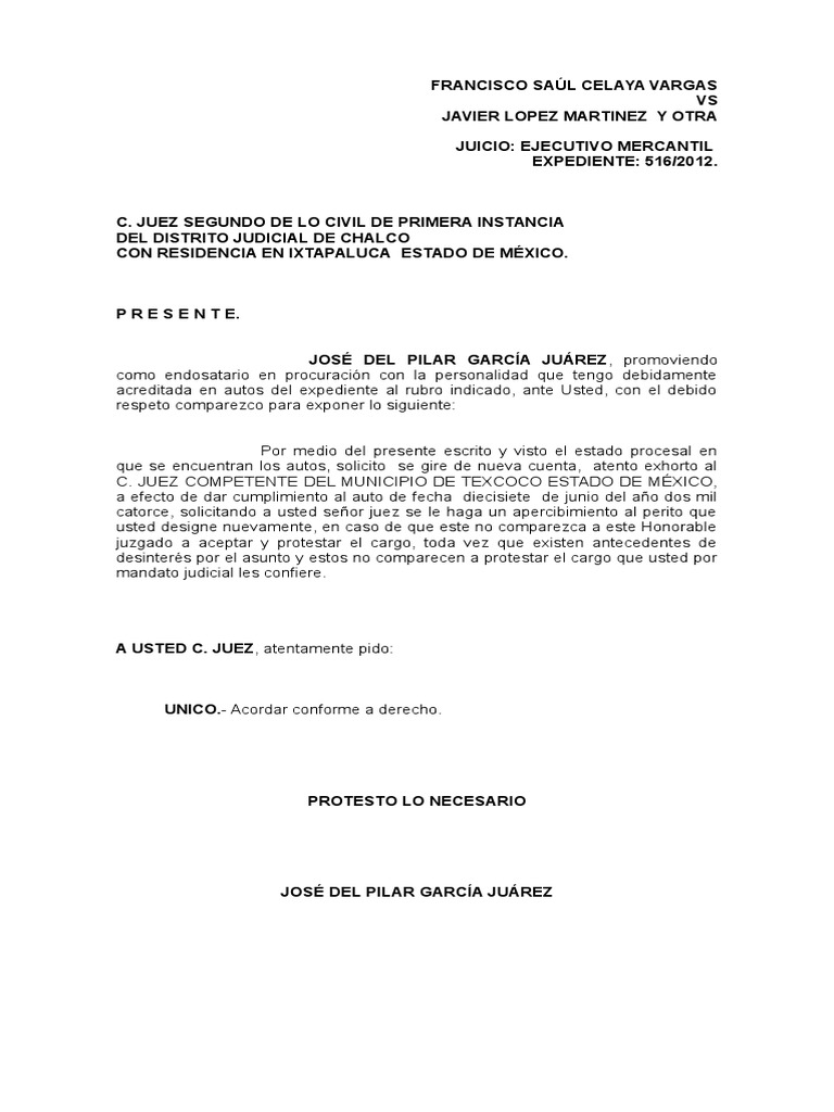 Que por medio del presente escrito y en virtud de que tanto la Presidencia de este H. Descarga formatos jurídicos del orden MERCANTIL. Reporte opc - otros - concentrado exhortos remitente expedie nte oficio juici o juzgad o exped folio exhort o causa cve folio opc ti materia civil de proceso escrito c.